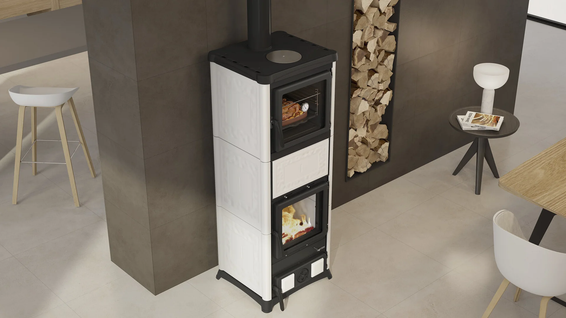 – Nizka vrata, ki jih je mogoče odpreti za čiščenje predala za pepel